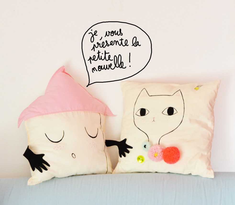Ce tout nouveau modèle de coussin est entièrement fabriqué à la main ! Tout d’abord, j’ai peint la tête de chat avec de la peinture pour textile résistante au lavage. Puis j’ai brodé son petit nez, ses tâches de rousseur ainsi que ses petits poils dans les oreilles ! Il est ensuite décoré de… Lire la suite Je vous présente la petite Nouvelle