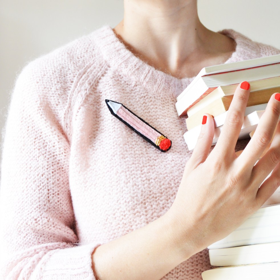 Je vous présente les 2 nouvelles versions de la broche crayon! La première, est réalisée avec du velours côtelé rose et un pompon rouge en guise de gomme. La mine en feutrine blanche décorée d’une petite perle noire.   A la base de la fausse gomme, vous pourrez trouver 6 perles tube dorées, brodées à… Lire la suite Merci Maîtresse
